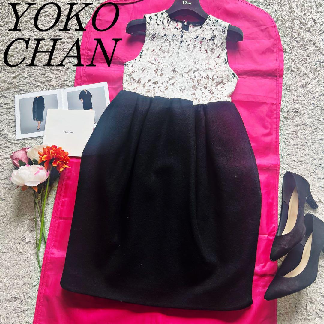 - 【良品】YOKO CHAN レースドッキングワンピース 38 ノースリーブ ヨーコチャン M 膝丈 ホワイト ブラック 白黒 バイカラー