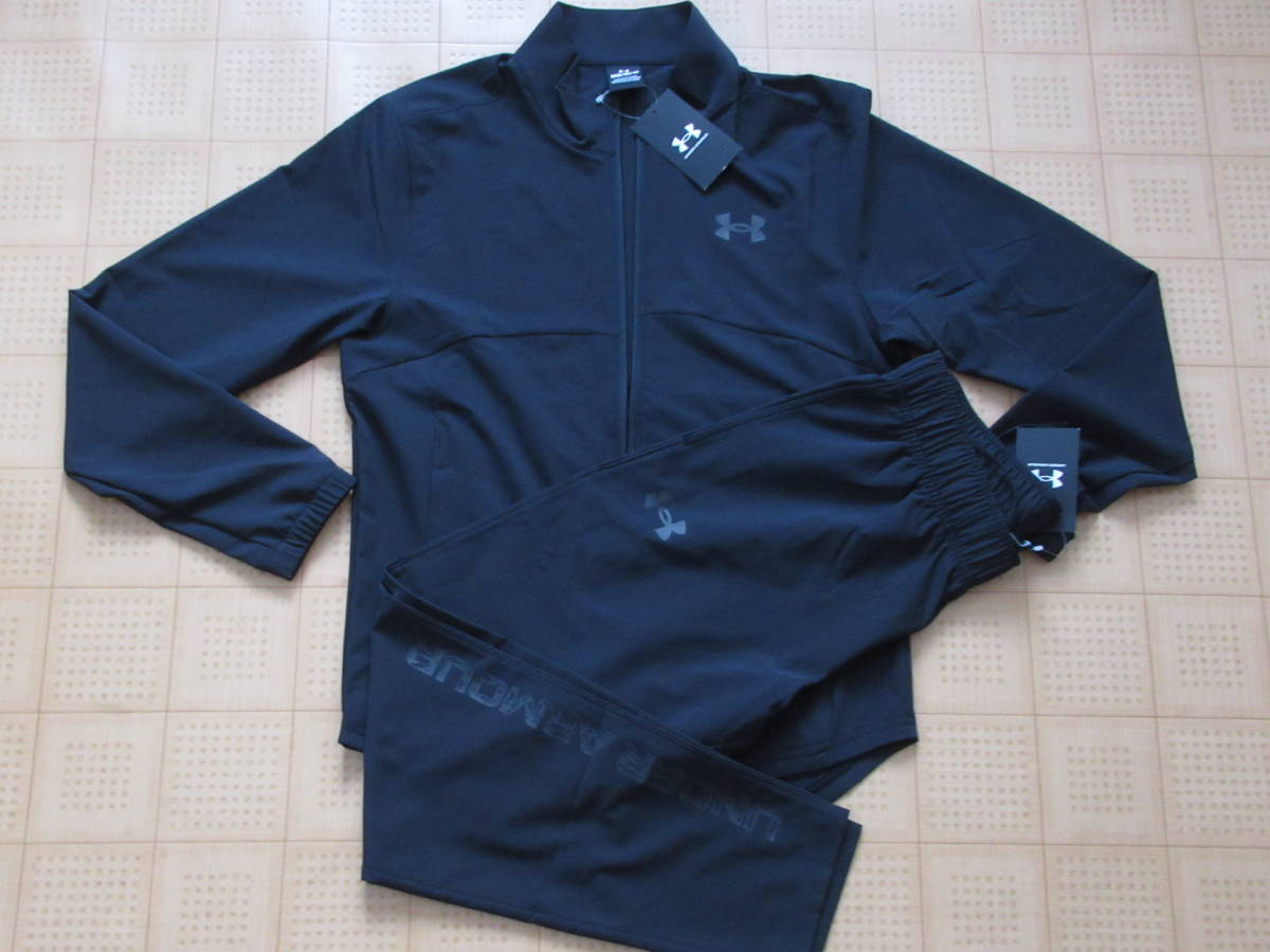 > 即決新品 MDサイズ UNDER ARMOUR ストレッチ薄手ジャージ上下セット セットアップ ブラック アンダーアーマー