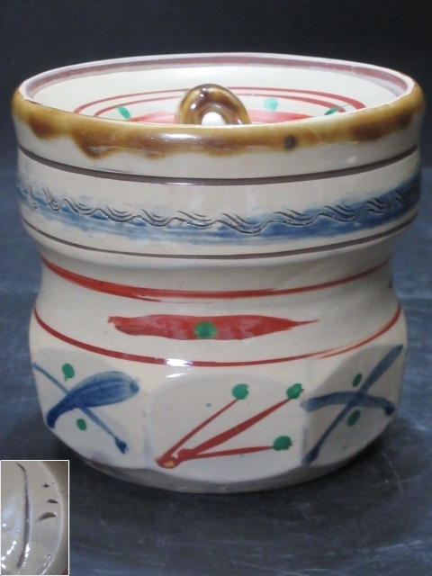 - 新垣栄三郎 造 「琉球赤絵壺屋焼水指」合箱 検)金城次郎