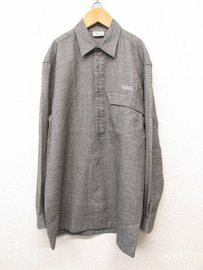 - k5946:日本製!BLACK PIA ブラックピア メンズ紳士 ウールシャツ 長袖シャツ ネルシャツ M ロゴ刺繍/グレー灰/ライカ:5