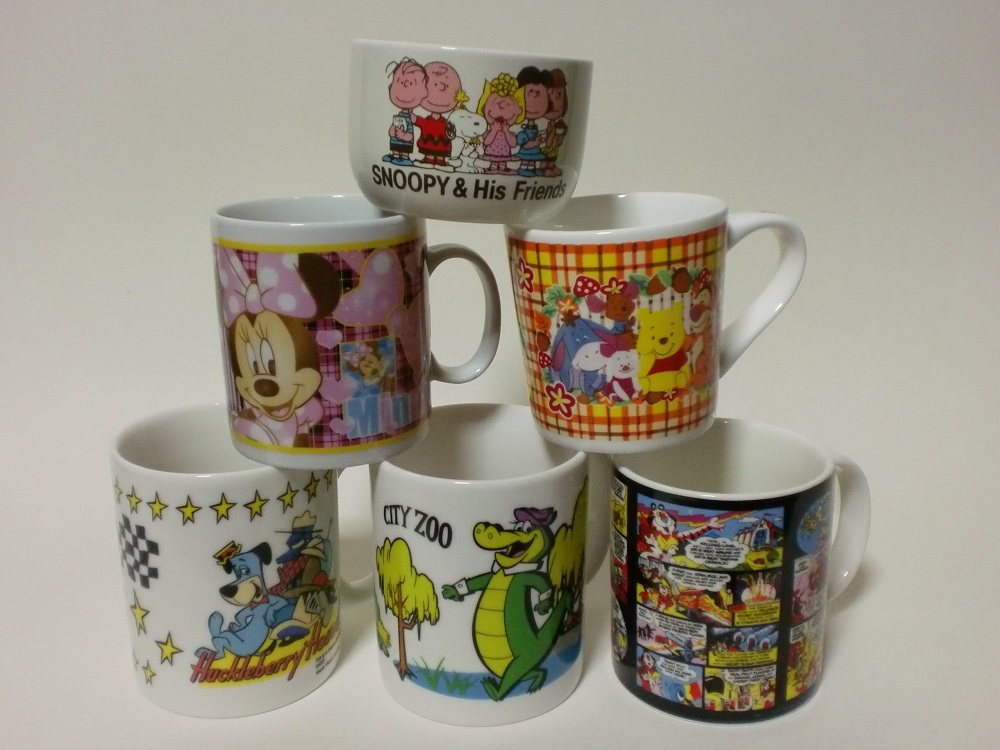 - アメリカン雑貨 キャラクター陶器マグ 陶器マグカップ 6点セット ケロッグ 珍犬ハックル ワニのワリー クマのプーさん ミニー スヌーピー