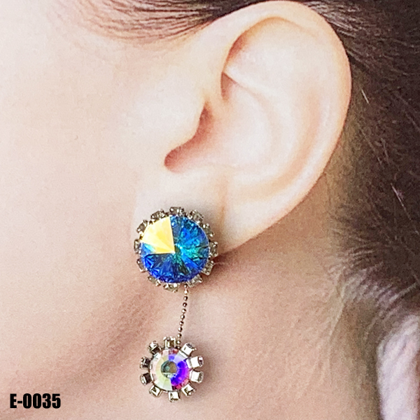 - 丸型 揺れる イヤリング スワロフスキー キラキラ パーティー 結婚式 ネジバネ式 ◇E-0035