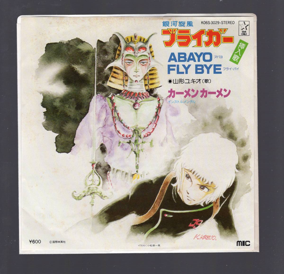 - EPレコード■銀河旋風ブライガー 挿入歌 ABAYO FLY BYE アバヨ・フライ・バイ■歌:山形ユキオ■片面:カーメン・カーメン■再生確認済み
