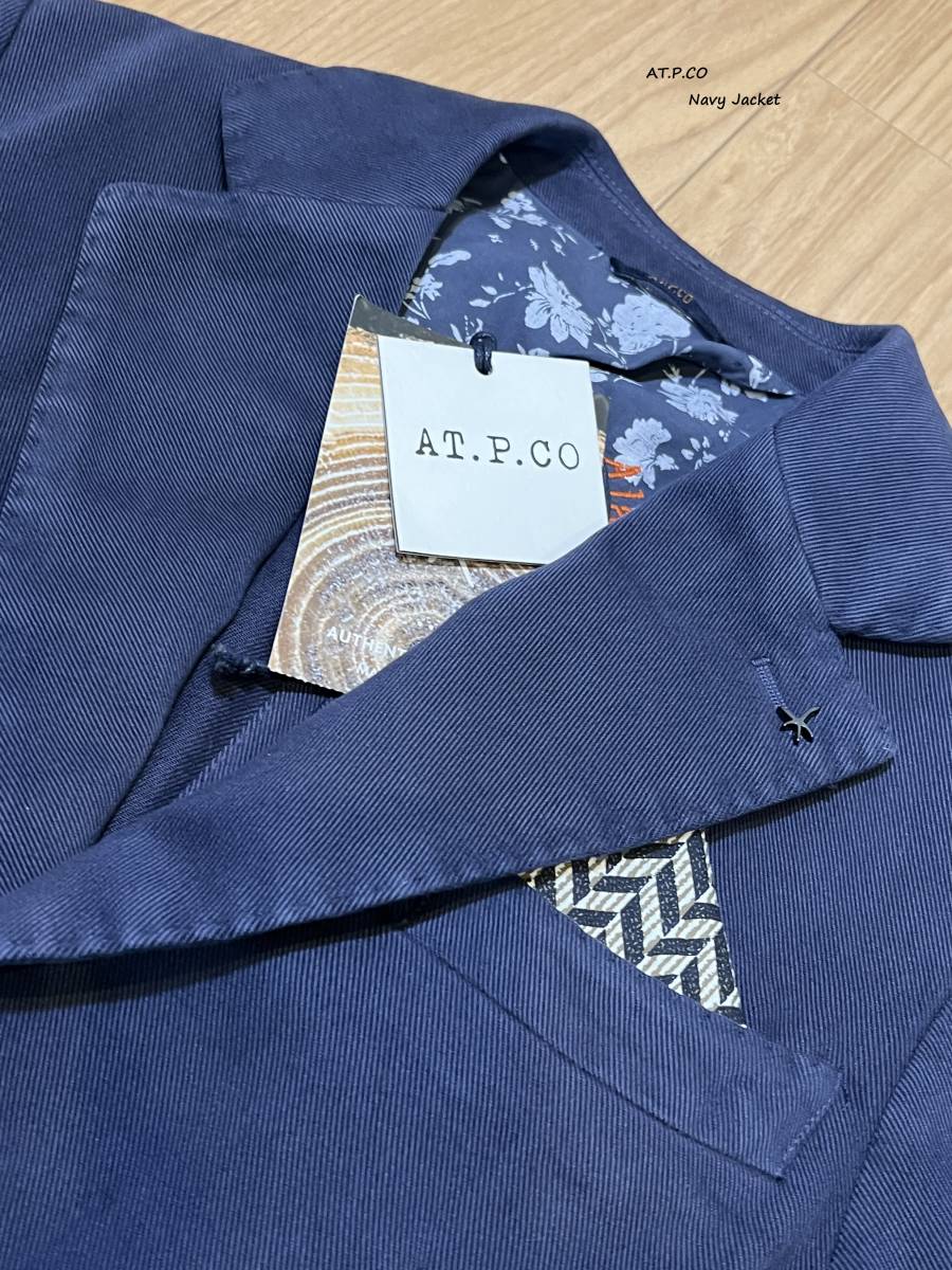 > AT.P.CO Navy Jacket アティピコ メンズ ネイビージャケット チーフ ブローチ付き 42サイズ