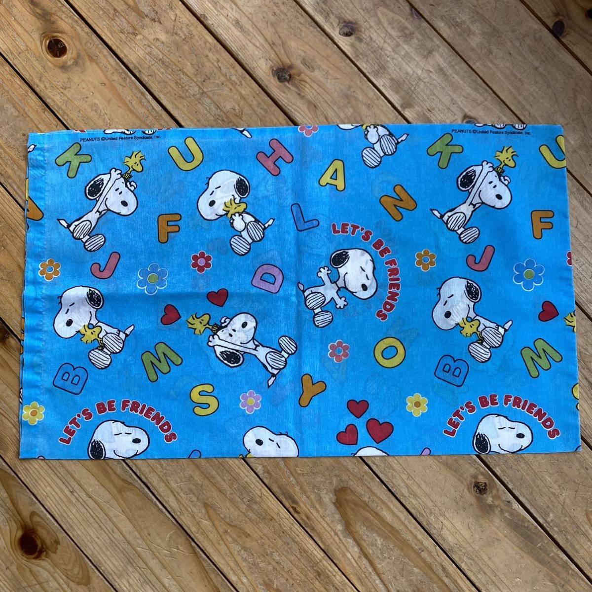 - USA ヴィンテージ ピローケース リメイク生地 素材 ピーナッツ PEANUTS スヌーピー 袋状両面プリント ライトブルー アメリカ仕入 B1398