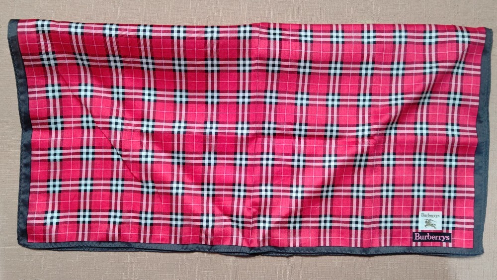 - 1-b バーバリー ハンカチ チェック柄 レッド(49×49㎝ 綿100% ブルーミング中西製)