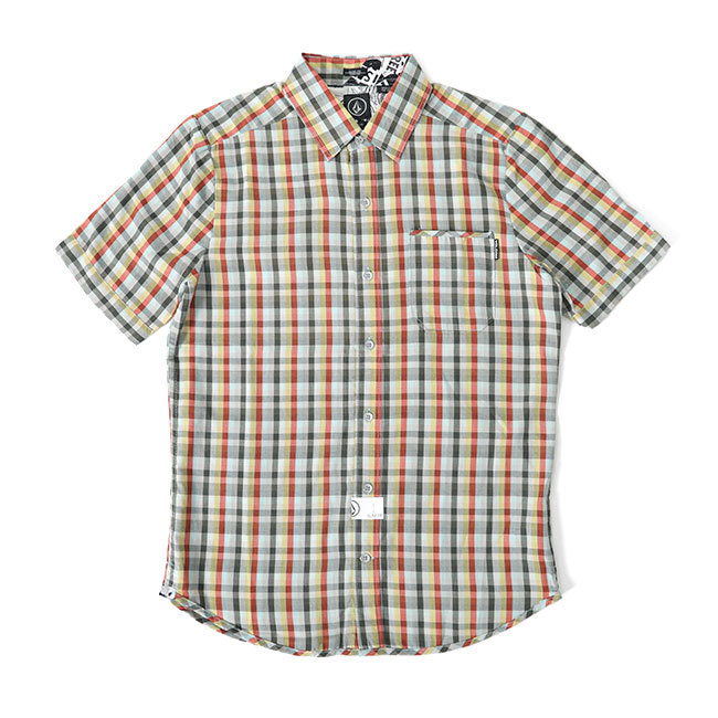 - VOLCOM ボルコム チェックシャツ A0421405 XS 黄色 半袖シャツ メンズ