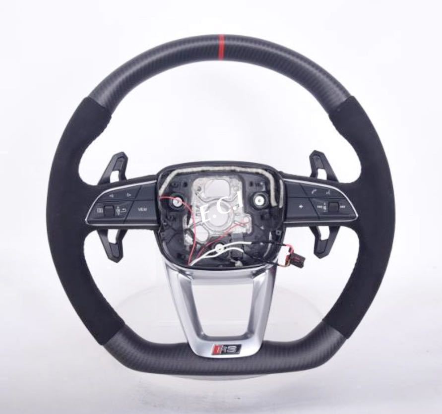 - 純正品 新品 アウディ RSQ8 RSQ7 SQ8 SQ7 Q8 Q7 ヒート カーボン ステアリング ハンドル ウラス パドルシフト付き