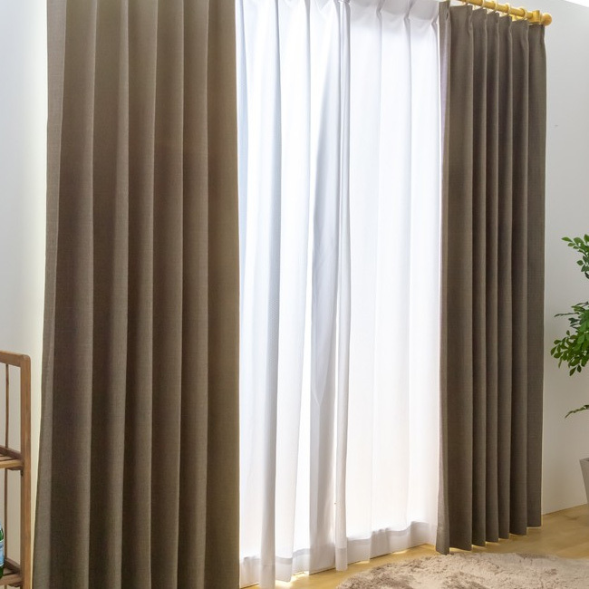 - カーテン 幅150cm×丈215cm2枚 ブラウン 完全遮光 遮光1級 省エネ 遮音 遮熱 断熱 保温 日本製 形状記憶加工付 246サイズ展開