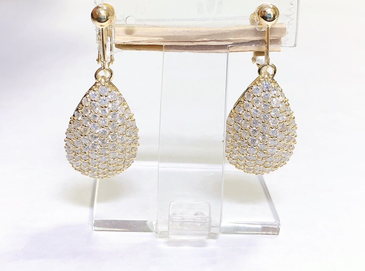 - 【質屋 尾張屋商店 東京】 ☆仕上済☆ K18YG ダイアモンドイヤリング しずく レディース 3ct