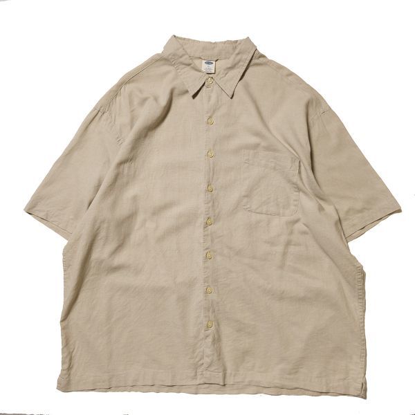> 00's オールドネイビー リネン×コットン ボックスシャツ 半袖 (XL) ベージュ 無地 2003年製 旧タグ オールド GAP ギャップ OLD NAVY Y2K