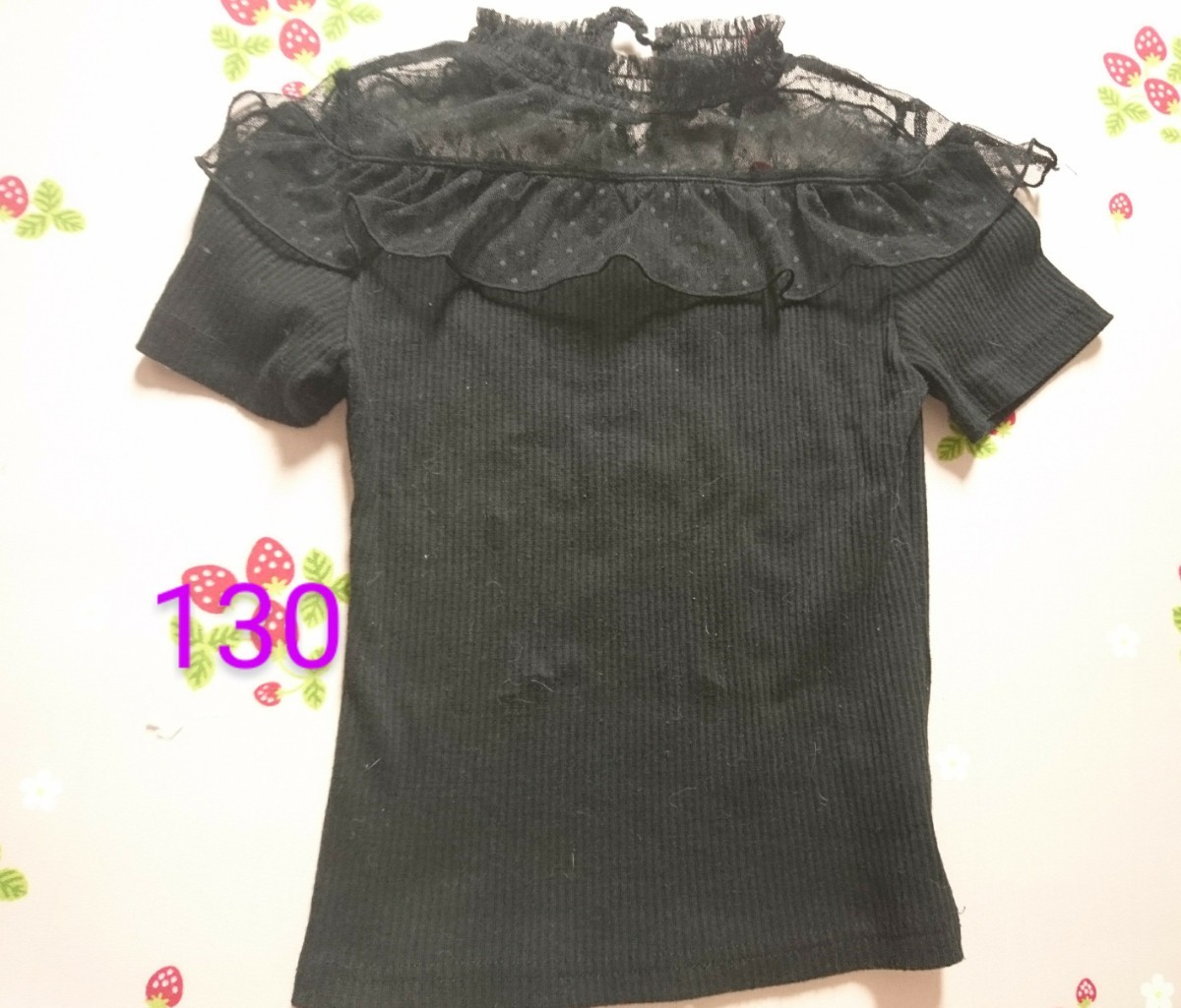 - 130 黒 ブラック レース 透かし 半袖 ガーリー