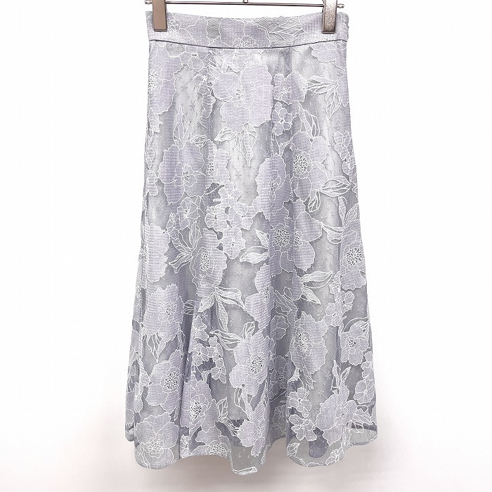 > ミッシュマッシュ MISCH MASCH 薄手 花柄レースパネルスカート フレア ウエストゴム 裏地付き ひざ丈 ネイビーグレー系 レディース