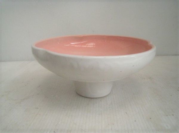 - 水盤 鉢 壷 花入 花器 オブジェ 花瓶 陶器 ピンク×ホワイト サイズ:外径24.5×H10.5㎝ /15N3.25-95