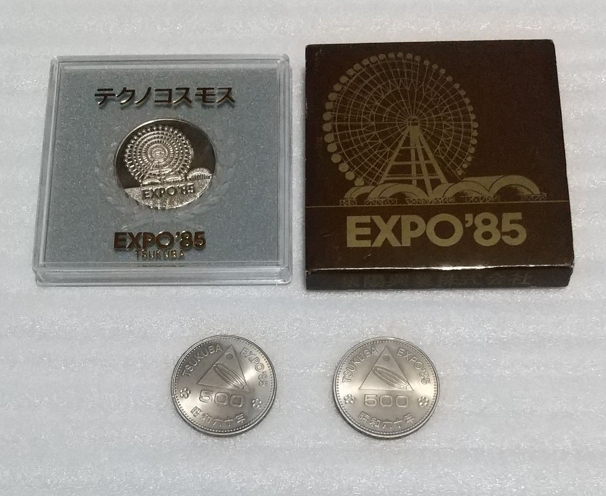 - 記念コイン日本国 硬貨 500円玉2枚つくば万博(国際科学技術博覧会) シンボルマークEXPO'85五百1985昭和60年+テクノコスモス ケース付メダル