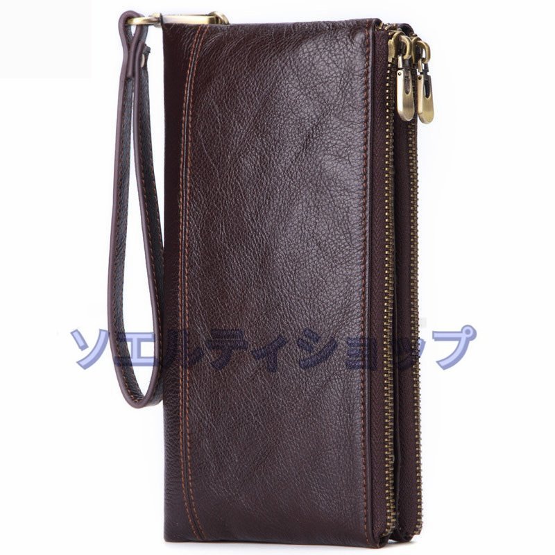 - 軽量 耐久性 長財布 財布 メンズ オイルワックス 牛革 本革 レザー 大容量 ビジネス 紳士 小銭入れ ウォレット ストラップ付