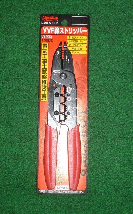 - ロブテックス VA203 VVF線ストリッパ- エコ電線対応 電気工事士試験推奨工具 切る 計る 剥く のの字曲げ作業が可能 新品 エビ