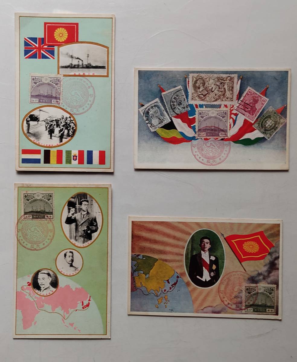 - 皇太子裕仁親王の欧州訪問記念はがき4通 1921年(大正10年) (R2KSKD4)