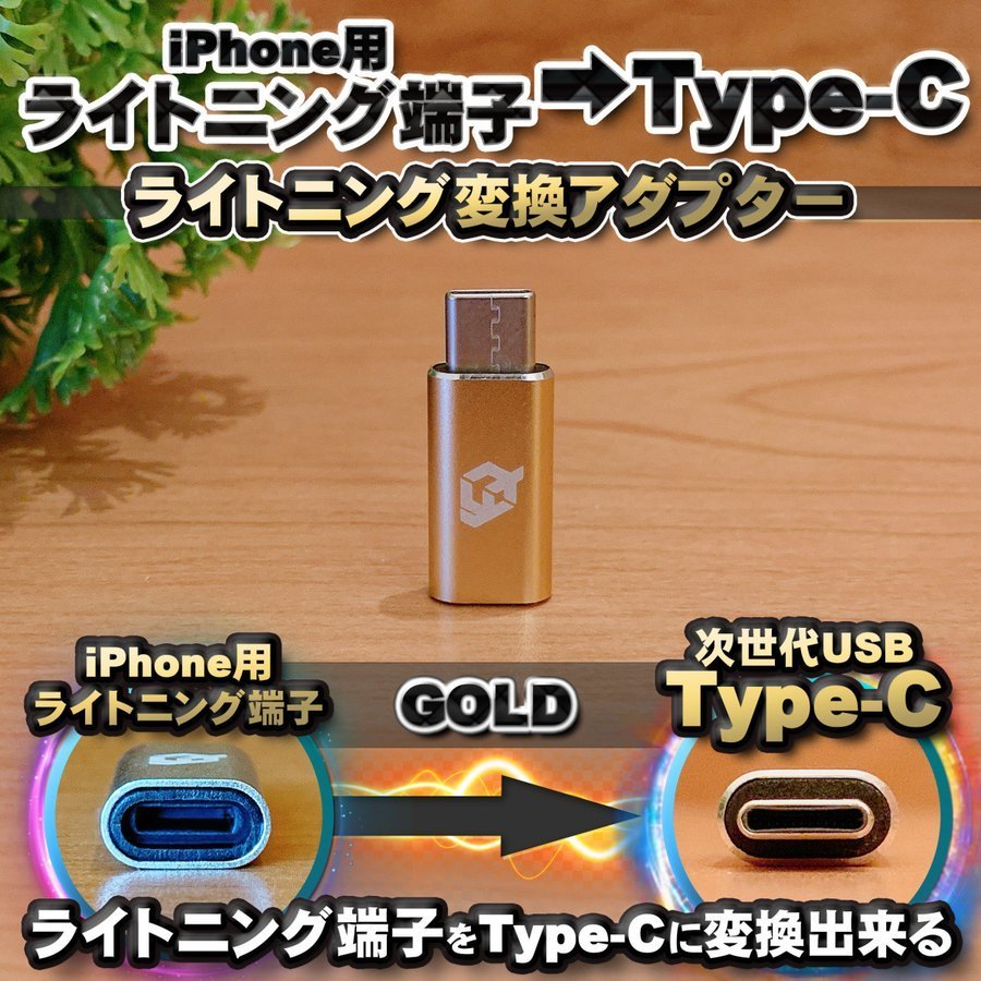 - iPhone用 ライトニングケーブル → USB Type C 端子 に変換する アダプター x1 【ゴールド】