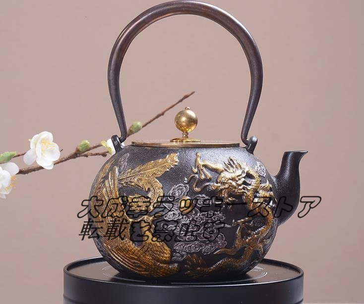 - 茶壺 手彫り鉄壺 鉄やかん 鉄分補給 未塗装鉄器 茶道具 1.3LF647