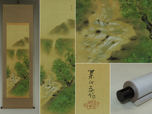 - 名品【真作】田中案山子【緑渓雨後】◆絹本◆共箱◆掛軸 t03056