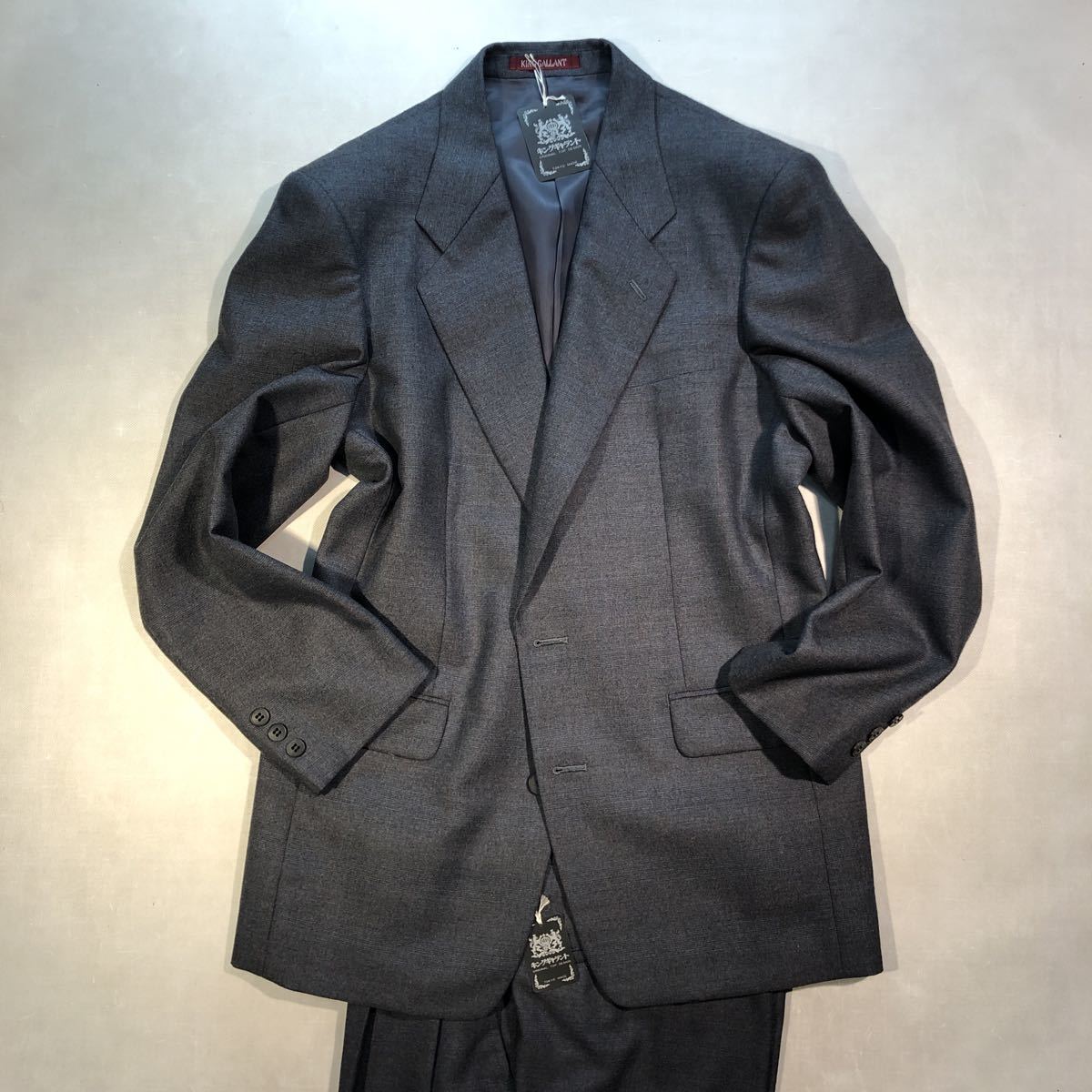 - 新品タグ付き高級KING.G日本製ビンテージ2つボタンスーツセットアップ サイズA6 ダブグレー系グレンチェック柄フランネル厚手ウール100%