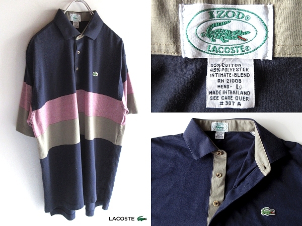 > 希少 80s-90sビンテージ IZOD LACOSTE アイゾッド ラコステ ワニロゴワッペン ボーダー パネル切替 ポロシャツ L ネコポス対応 RN21008