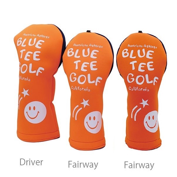 > ◎『HC34タイプ』ブルーティーゴルフ【3PBオレンジ:ストレッチスマイル】3本セット(B)ヘッドカバー HC-34 BLUE TEE GOLF 送料無料