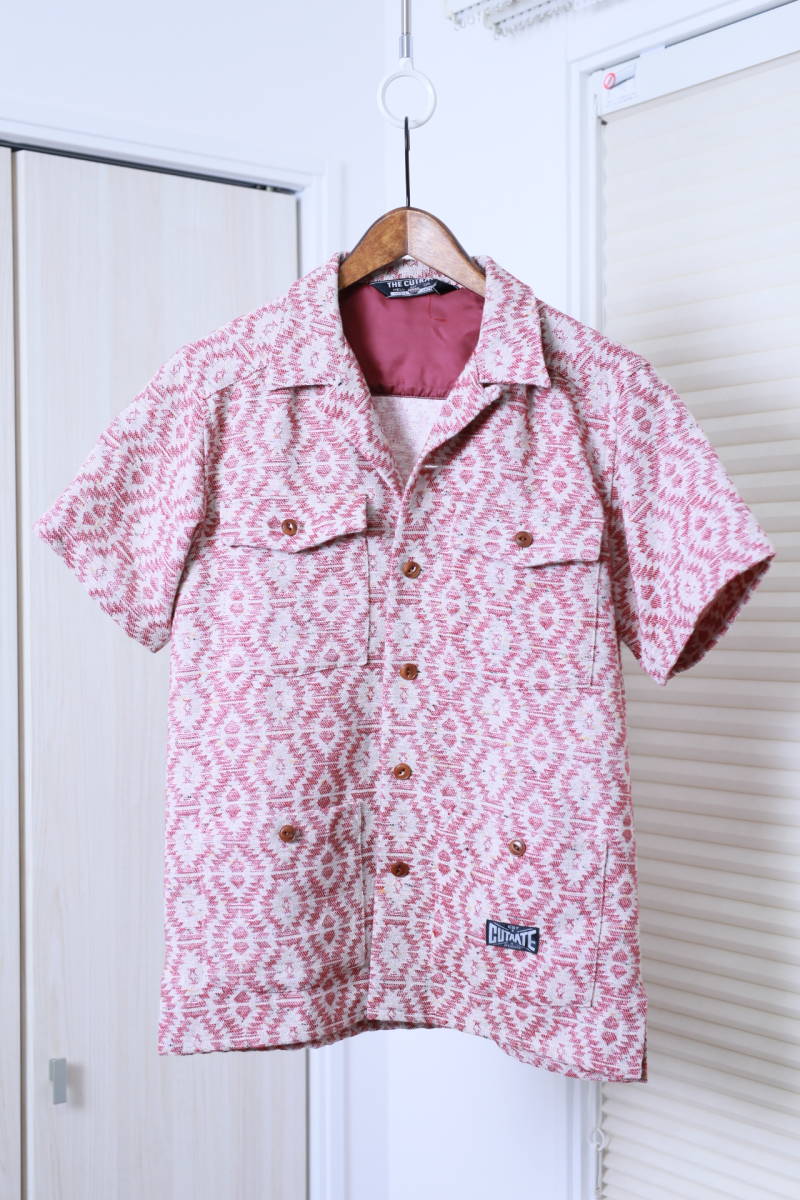 > ★日本製THE CUTRATE カットレート ネイティブ総柄半袖シャツ 古着ユーズド男性メンズM赤レッド服中古トップス