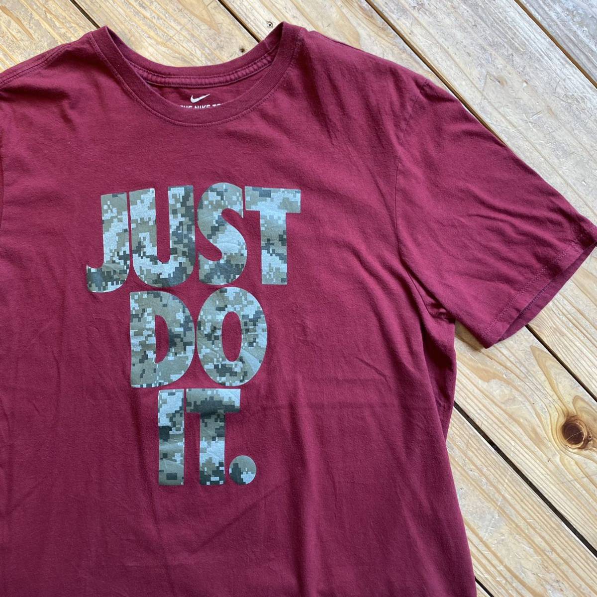 > USA古着 NIKE ナイキ Tシャツ 半袖 メンズ Lサイズ えんじ JUST DO IT デジタルカモ プリント アメカジ カジュアル アメリカ仕入 T2167