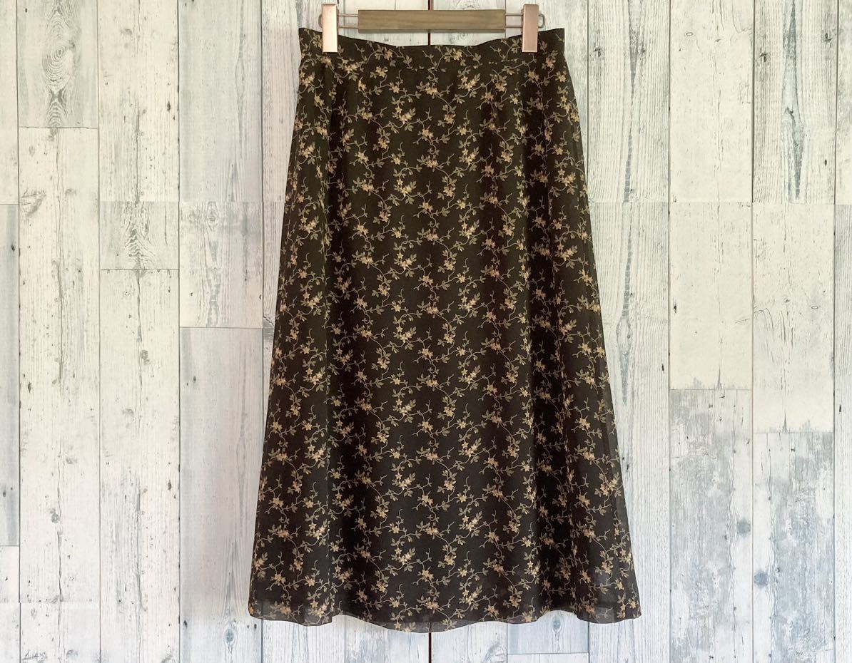 - 薄手生地 花柄 ロングスカート ブラック系 レディース サイズL