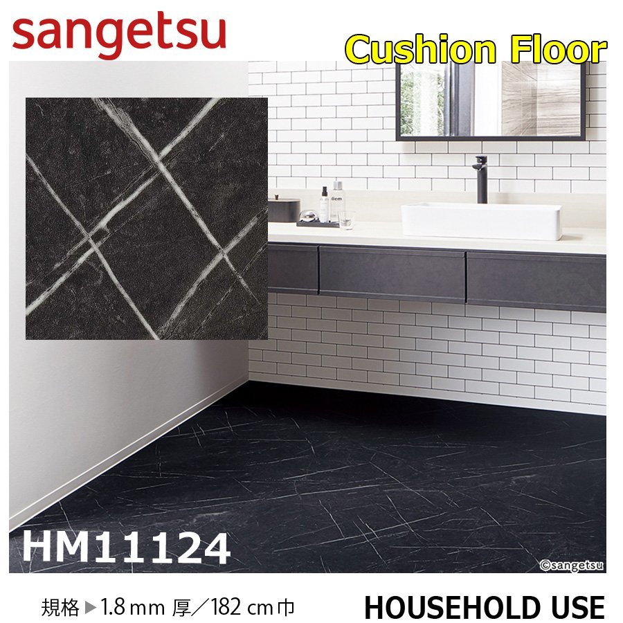 > 【サンゲツ】家庭用クッションフロアHM11124 ネロマルキーナ黒部屋 1.8㎜厚/182㎝巾【住宅用ストーン CF Hフロア(H FLOOR)】【7】