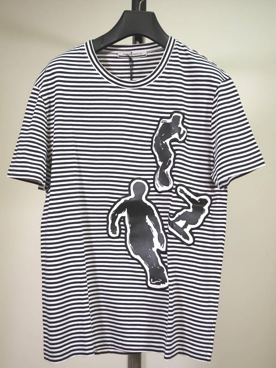 > 未使用品 ANDREA POMPILIO アンドレアポンピリオ 17SSサーファーワッペンボーダーTシャツ48白×黒 Italy製