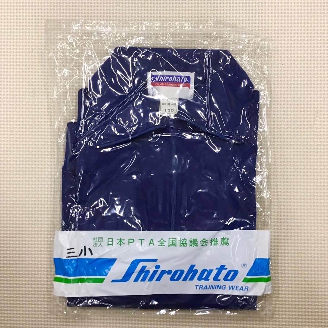 > (M)308 新品【Shirohato】シロハト トレーニングシャツ サイズ 130 /レーヨン/無地/長袖/紺/襟ファスナー/体操着/児童/小学生/日本製