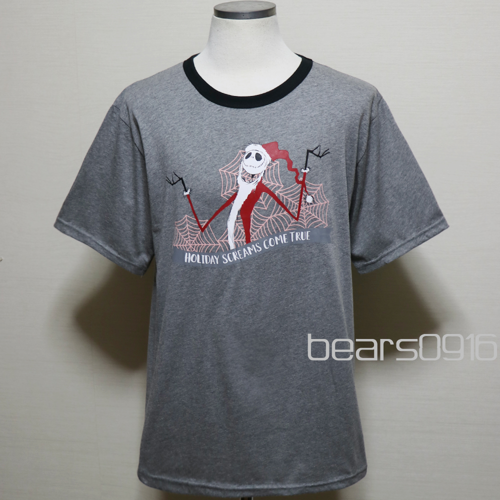 - アメリカ購入 新品 The Nightmare Before Christmas ナイトメアービフォアクリスマス プリント リンガーTシャツ 杢グレー 紺 L