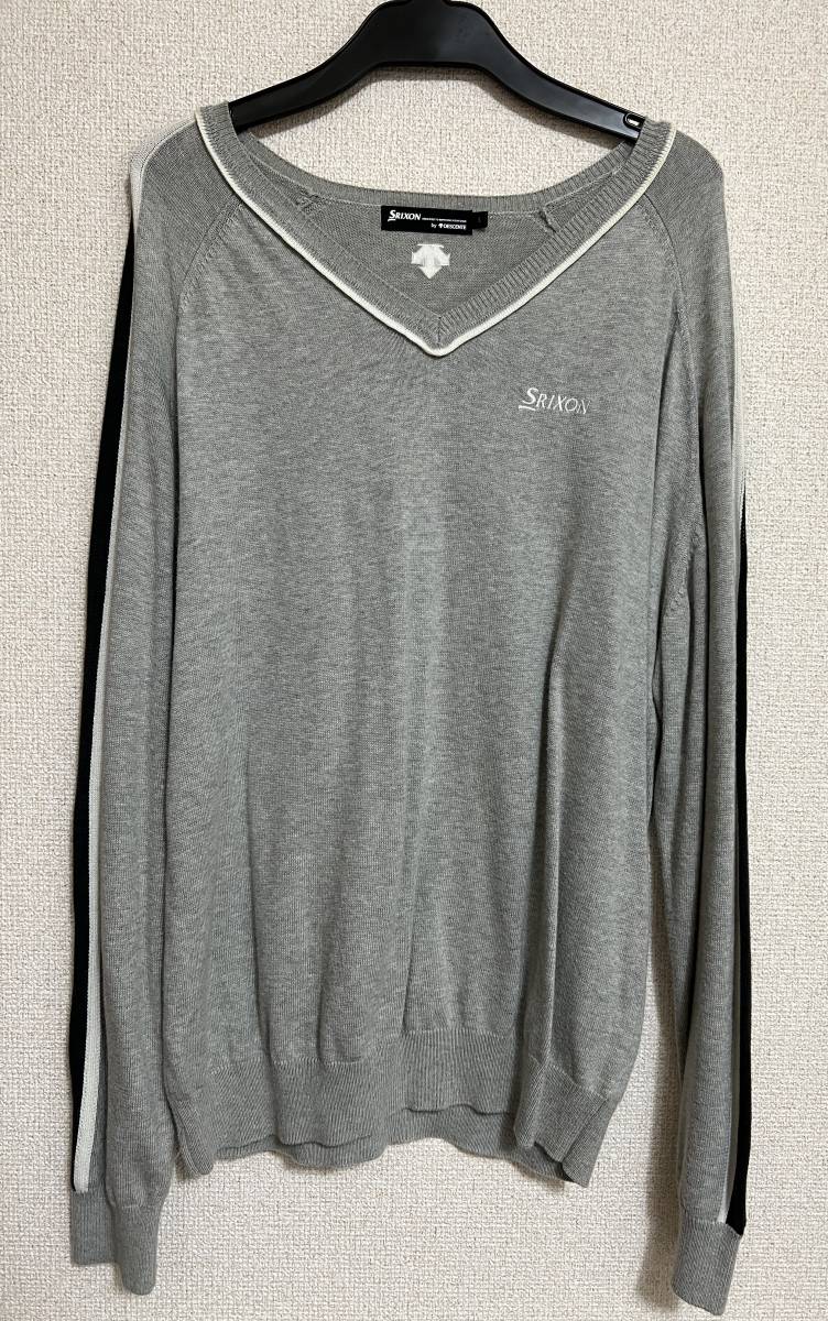 - ■最終価格 新品未使用 SRIXON スリクソン 長袖 Vネックセーター グレー L 袖ボーダーストライプ メンズ ゴルフ スポーツ 定価12,000円