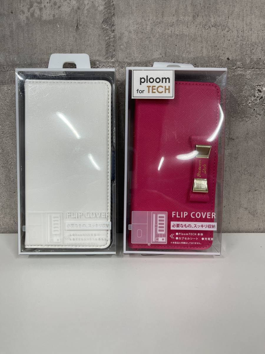 - 新品 送料無料 Ploom TECH用 電子タバコケース 2個セット フリップカバー ケース 白 ピンク 手帳型カバー 886 848