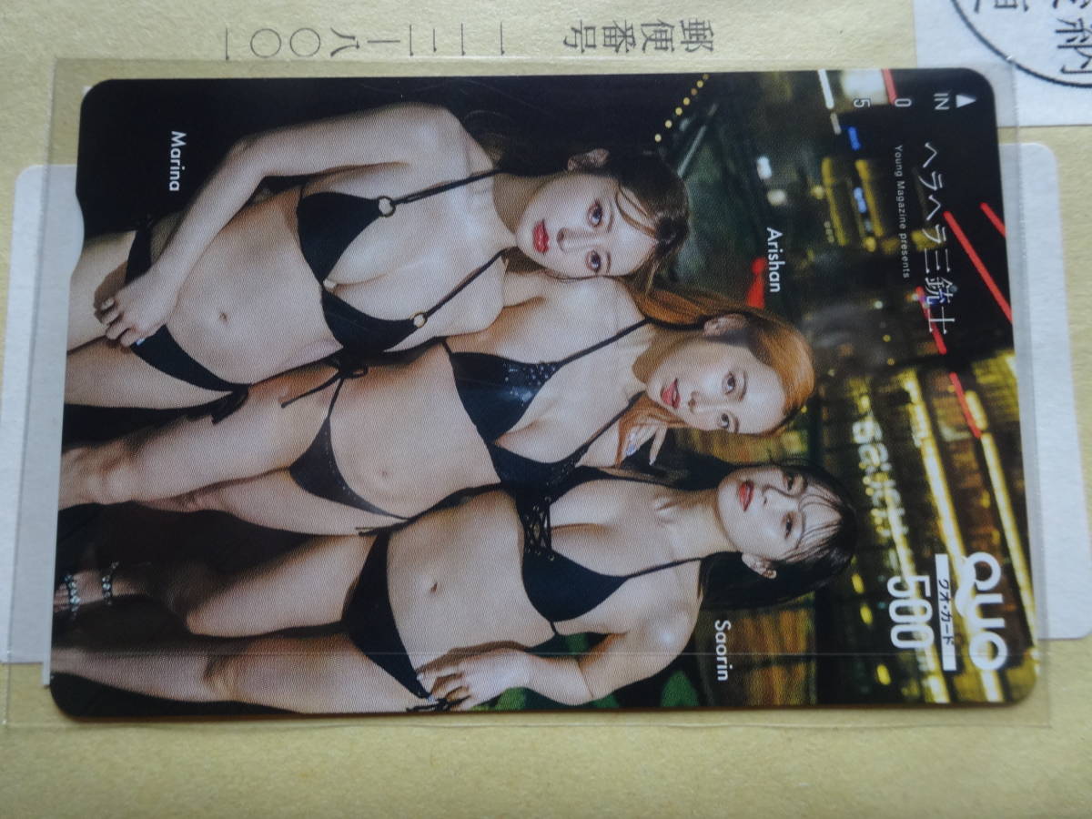 - ヤングマガジン ヘラヘラ三銃士 ありしゃん・まりな・さおりん 抽プレQUOカード