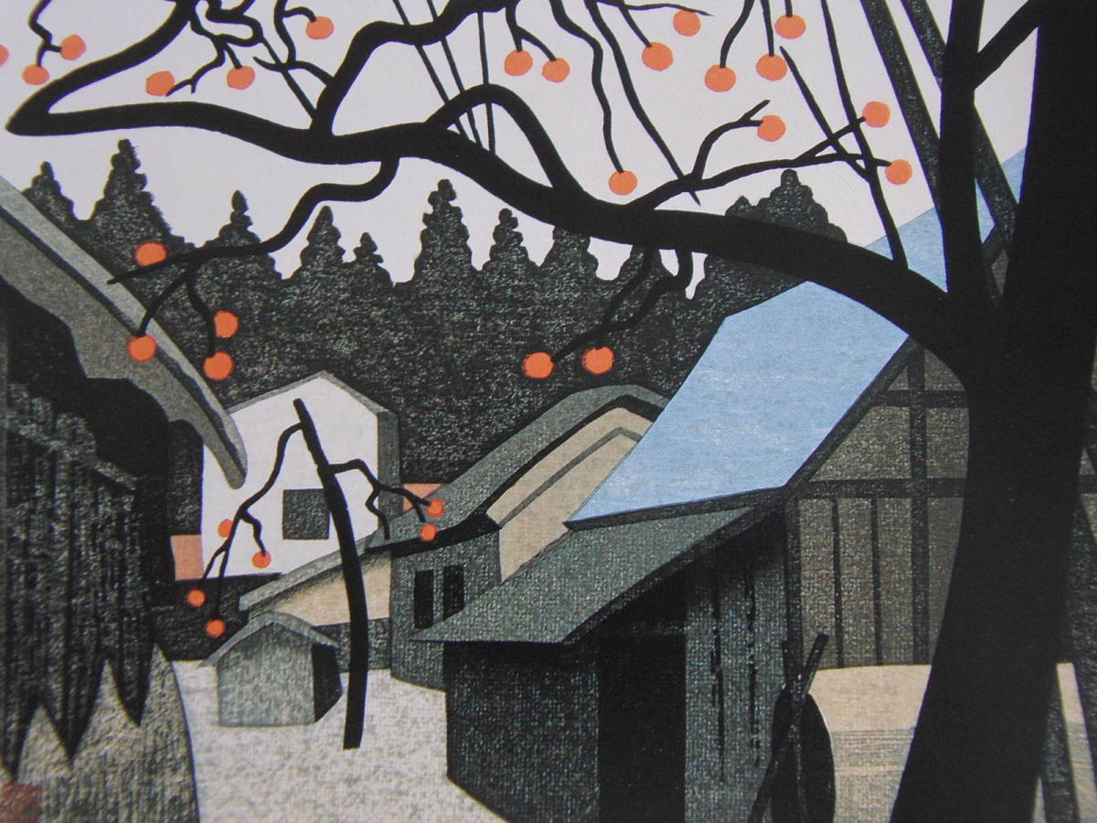 > 斎藤清、【柿の会津(36)】、希少な額装用画集より、厳選、新品額装、マット額装付、状態良好、巨匠、日本人画家