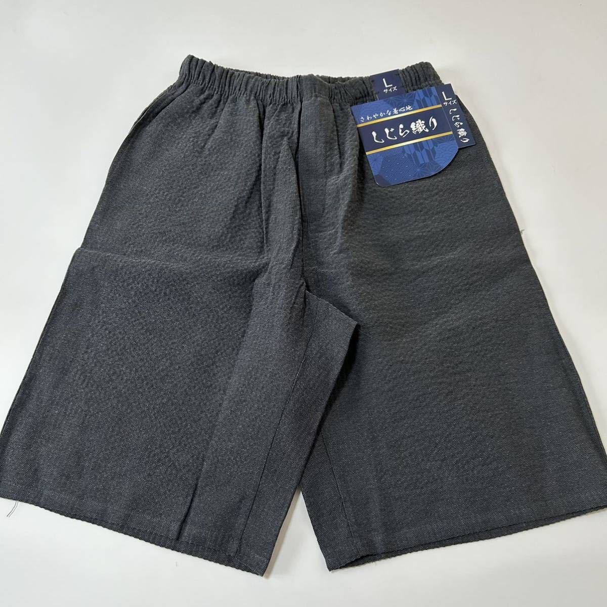 - しじら織り ハーフパンツ 無地 グレー Lサイズ