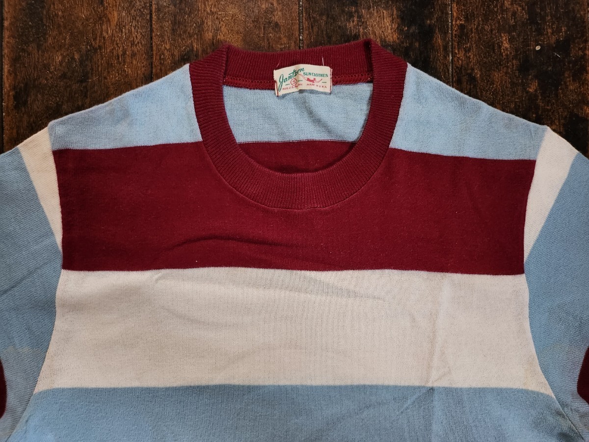 - レア ★ 40 s 〜 ジャンセン 太 ボーダー T シャツ トリコ ロール サックス ボルドー ワイド ピッチ ビンテージ jantzen スウェット セータ