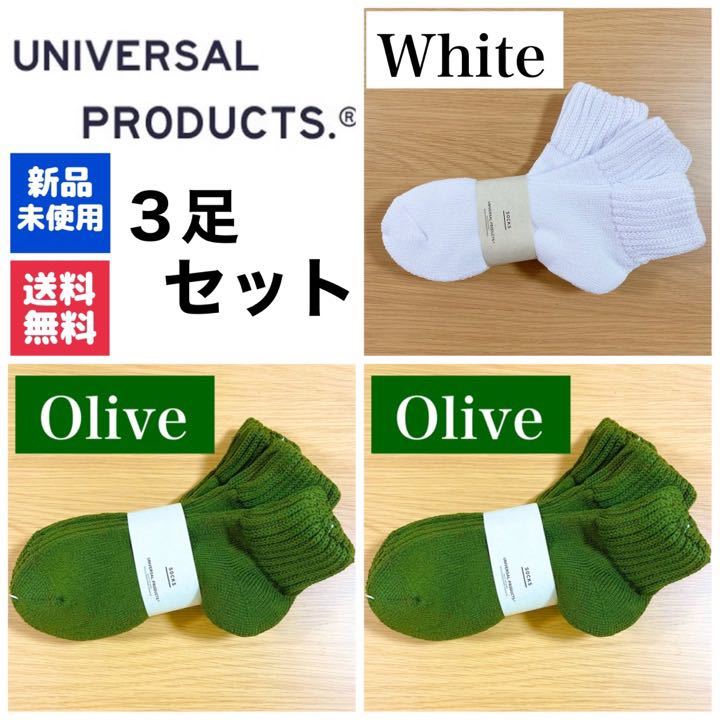- 新品 UNIVERSAL PRODUCTSソックス オリーブ×2 ホワイト×1