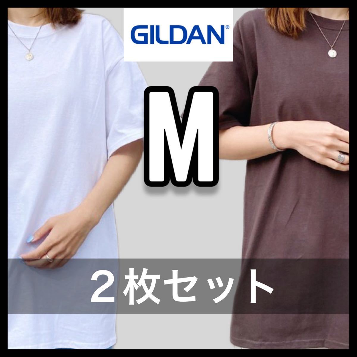 - 新品未使用 ギルダン 6oz ウルトラコットン 無地半袖Tシャツ 白 ホワイト 茶 ブラウン 2枚セット Mサイズ ユニセックス GILDAN
