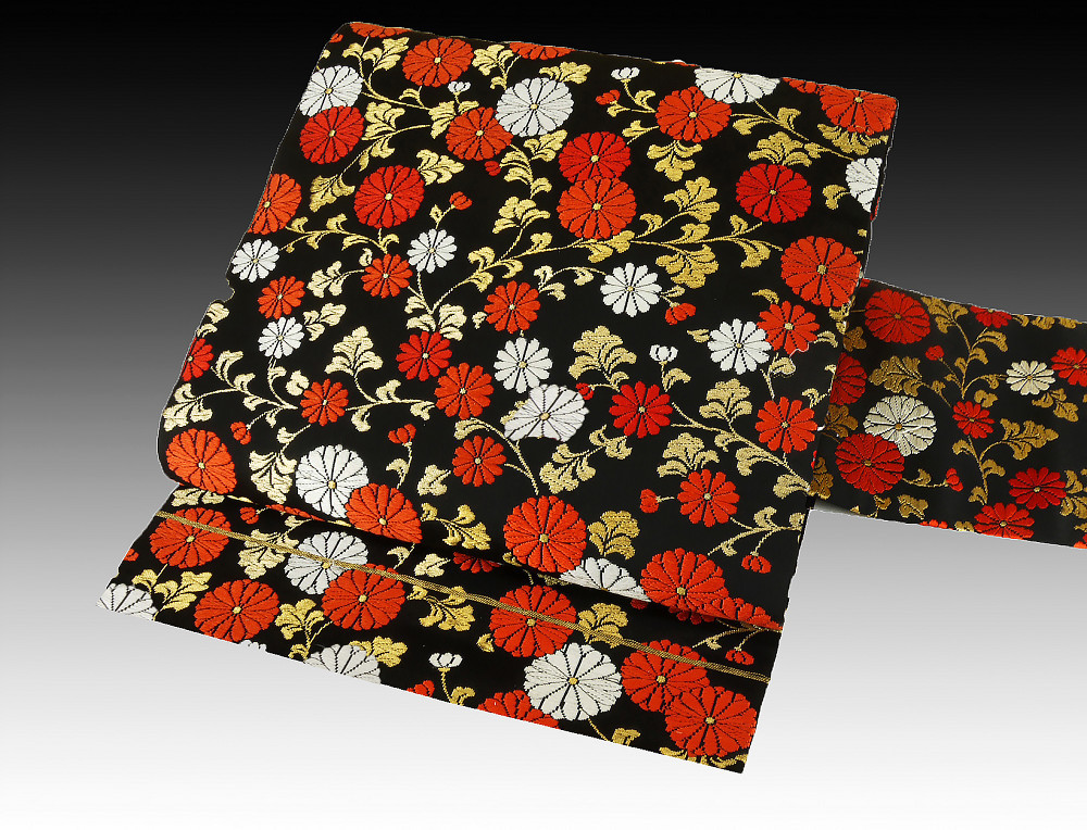 - 【京かんざし】ob-562★名古屋帯 唐織 菊唐草 正絹 黒地 未使用★即決送料無料