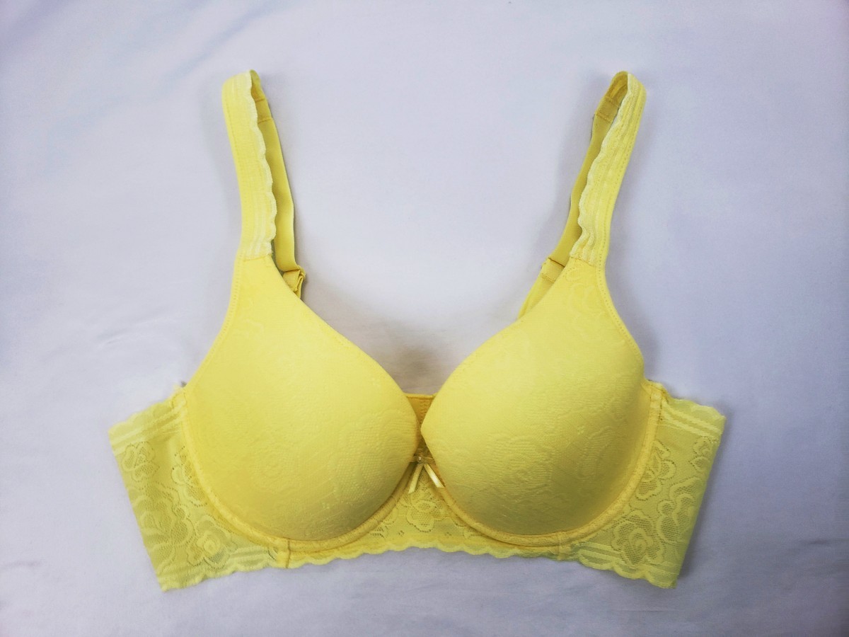 - in0358 △ 新品 ★ ブラジャー C70 イエロー クリーム 黄 花柄 レース 可愛い フェミニン リボン 快適 上品 薄手 伸縮性 滑らか シンプル