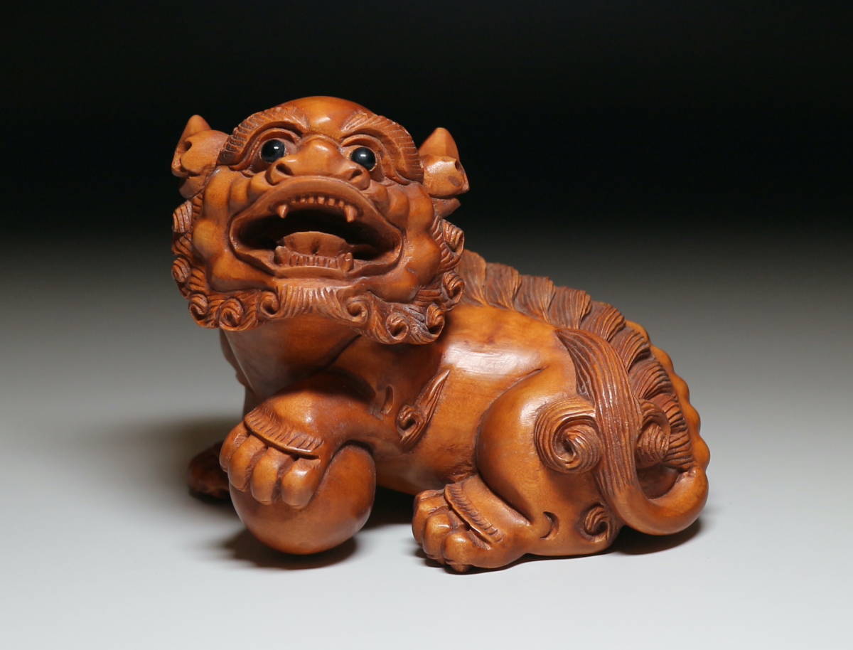 - 【心】k252 置物 獅子 (検索用:彫刻/木彫り/柘植/インテリア)