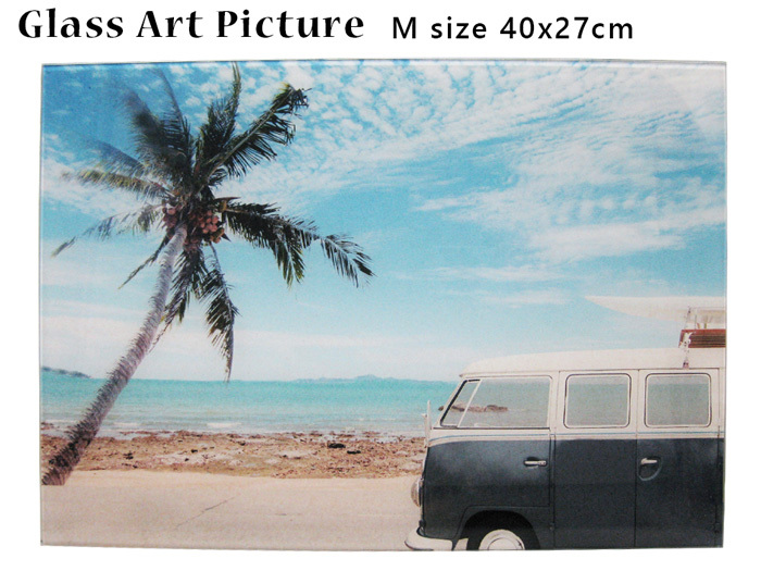 > ★白い壁を海にしませんか!ガラス アート ピクチャーM-S (壁掛け) サンセット サーフボード 砂浜 40cm 海 サーフィン 夕焼け 西海岸風