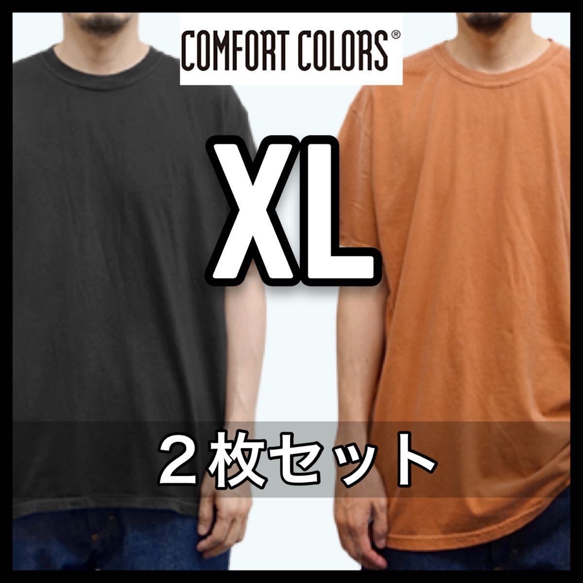 > 新品未使用 コンフォートカラーズ ガーメントダイ 6.1oz半袖Tシャツ 黒 ヤム、オレンジ XL サイズ COMFORT COLORS GARMENT DYE TEE