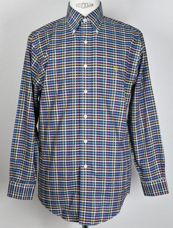 > Brooks Brothers ブルックスブラザーズ ボタンダウン マルチカラー チェック 長袖シャツ メンズ ブルー S b7004