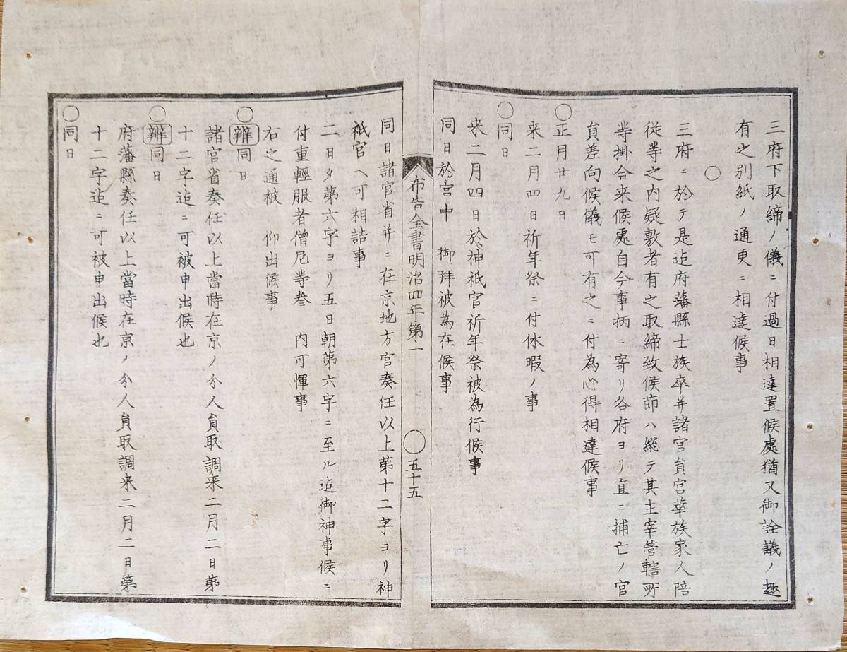 - f23080215〇明治布告布達 布告全書 神祇官 祈年祭 明治4年〇和本古書古文書